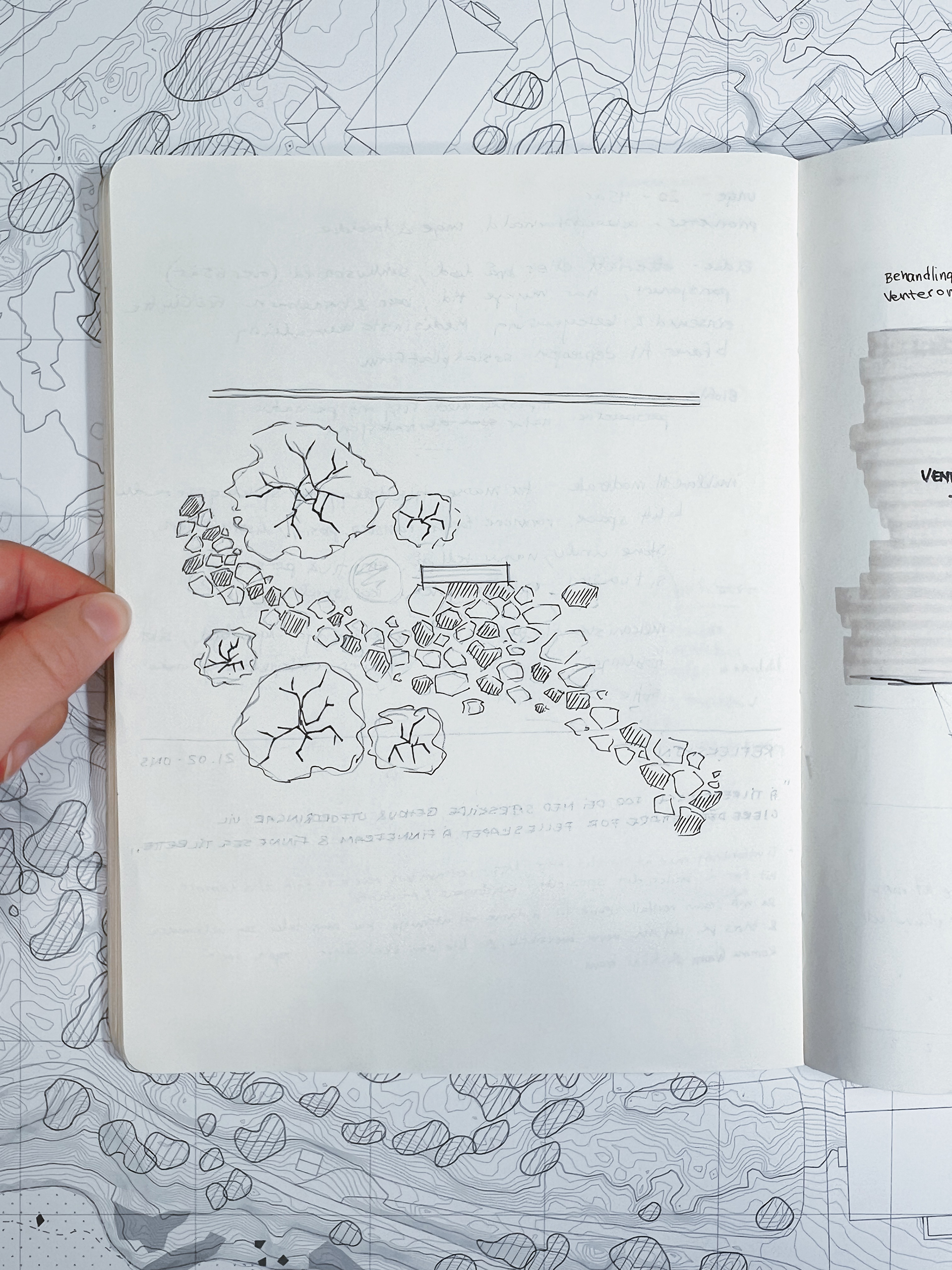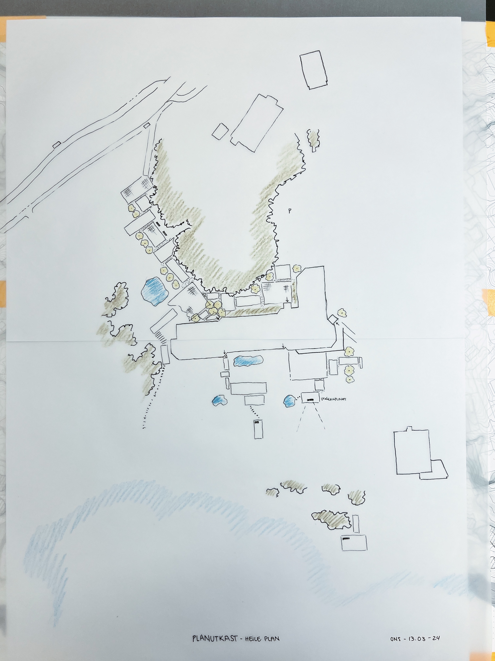 Utval bilder teken under feltarbeid. Illustrera ulike element i landskapet som kan ha innverknad på psykisk helse