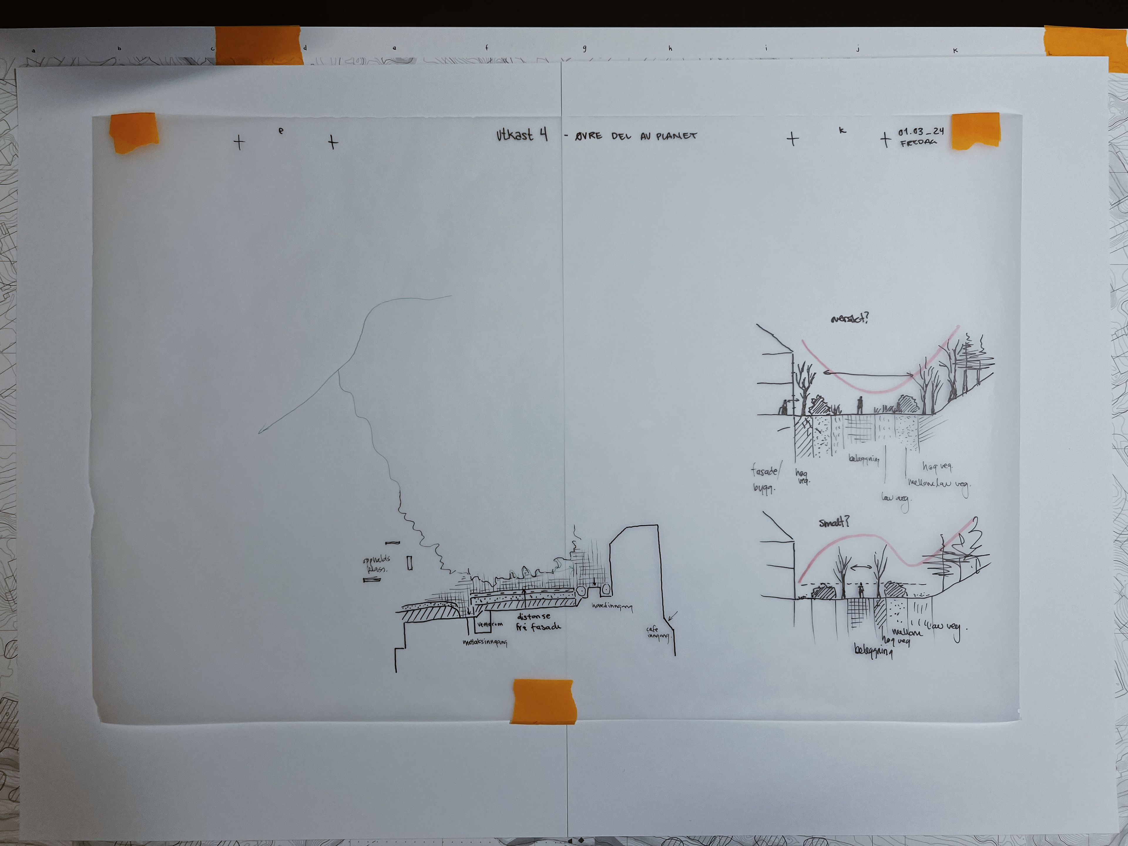 Landskapssnitt - 1:200 Gjennom prosjektområdet i ulike årstider