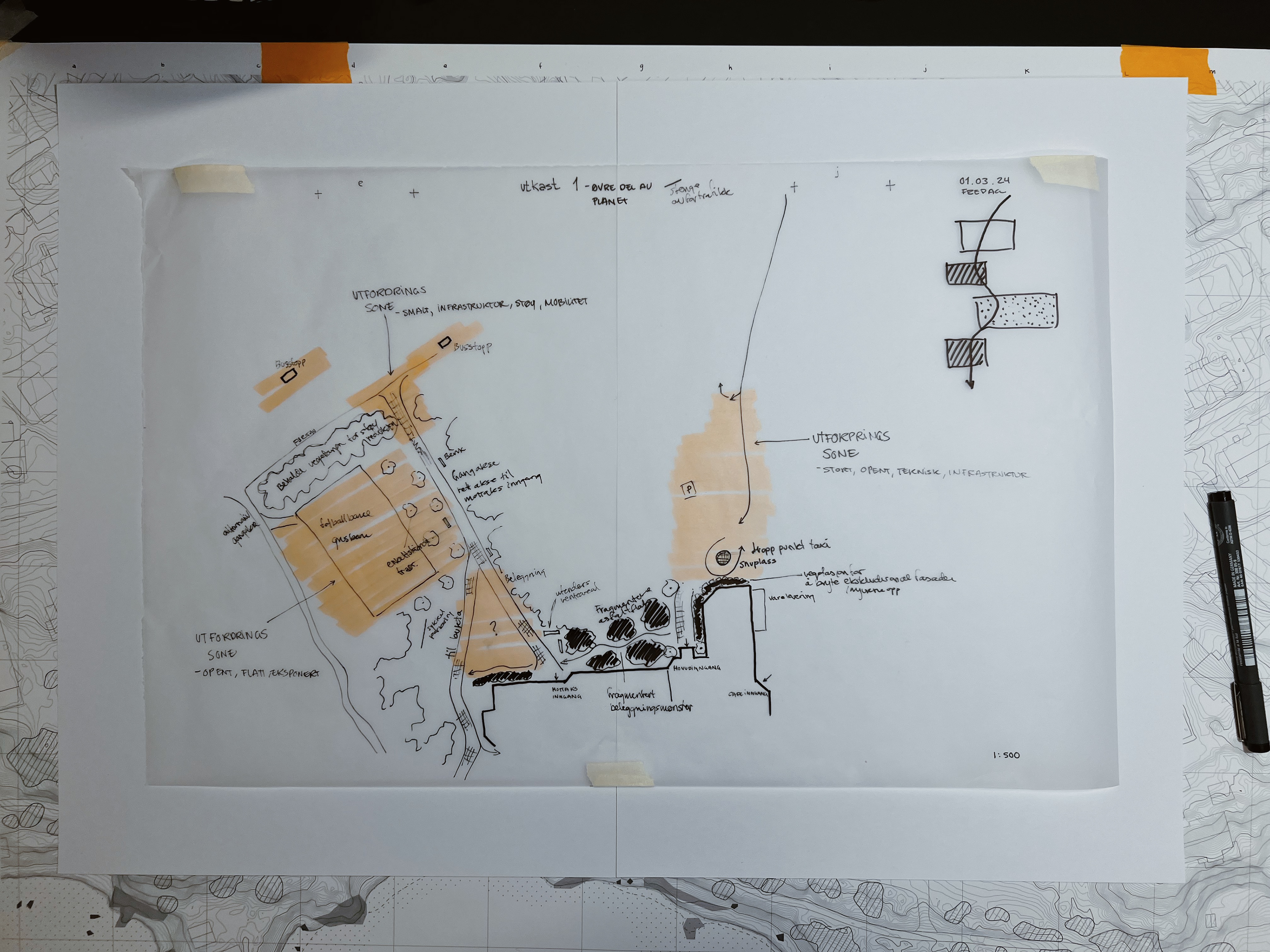 Store delar av designprosessen vart gjort gjennom kontinuerlig skissering på papir for å kunne produsere mange utkast til design, noko som skjedde tidleg i utviklinga av prosjektet.